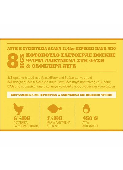 Λίπος Κοτόπουλου (7%), Αφυδατωμένη Γαλοπούλα (4%), Αυγά (4%), Ωμό Καλκάνι (4%),