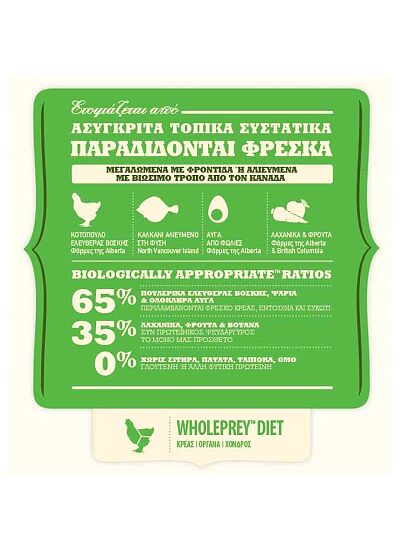 (4%), Ωμό Καλκάνι (4%), Ιχθυέλαιο (3%), Ολόκληρα Ρεβίθια, Ολόκληρες Πράσινες