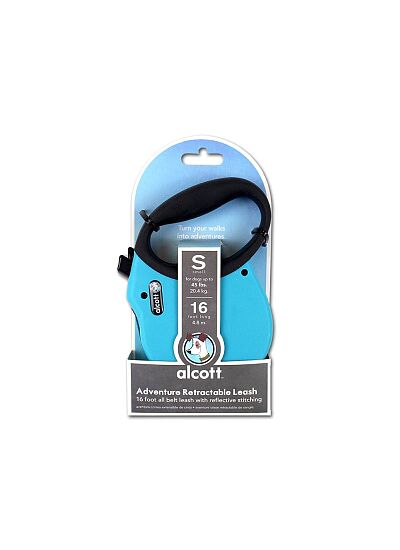 Οδηγός αυξομειώμενος Alcott Adventure Γαλάζιο S. Κατάλληλος για σκύλους έως 20 κιλά. Μήκος ιμάντα 5 μέτρα. Χειρολαβή από μαλακό και αντιολισθητικό υλικό για άνετο κράτημα. Ο ιμάντας διαθέτει ανακλαστική ραφή για αυξημένη ορατότητα σε χαμηλό φωτισμό. Διαθέτει εύκολο μηχανισμό κλειδώματος απόστασης με το πάτημα ενός κουμπιού. Κατασκευάζεται στις Ηνωμένες Πολιτείες.