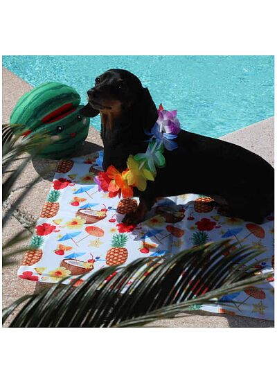 Δροσιστικό χαλάκι για τις ζεστές μέρες του καλοκαιριού, κατάλληλο για σκυλάκια, γατούλες και τρωκτικά. Το χαλάκι Fresh Cocktails Refreshing Mat από την Croci κατασκευάζεται από πολυεστέρα και PVC, ανθεκτικό στις γρατζουνιές και αδιάβροχο, ιδανικό για ζωάκια με προβλήματα ακράτειας. Εσωτερικά περιέχει στρώση τζελ, 100% ασφαλής για ζώα και ανθρώπους, η οποία δρα σαν ρυθμιστής της θερμοκρασίας του σώματος του αγαπημένου σας τετράποδου. Μέσω της έμμεσης επαφής ανάμεσα στο σώμα του ζώου και της στρώσης τζελ απάγεται θερμότητα από το σώμα του ζώου, δροσίζοντας και ανακουφίζοντάς το από την υπερβολική ζέστη γύρω του. Η όλη διαδικασία γίνεται σταδιακά χωρίς πρόσθετα βοηθήματα όπως ηλεκτρικό ρεύμα ή νερό. Το χαλάκι καθαρίζεται εύκολα με υγρό πανί, ενώ δεν συγκρατεί τρίχες και ακαθαρσίες. Είναι αναδιπλούμενο για εύκολη μεταφορά και αποθήκευση και προσφέρει άνεση, ειδικά πάνω σε σκληρές επιφάνειες χάρις στην ελαφρώς αφράτη του γέμιση. Μπορεί να χρησιμοποιηθεί έξω και μέσα στο σπίτι, στο αυτοκίνητο και τη βόλτα. Μια ασφαλής και αποτελεσματική λύση που ο μικρός μας φίλος είναι σίγουρο ότι θα λατρέψει !!!