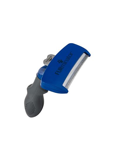 Εργαλείο deShedding από την Furminator για τον καλλωπισμό του τριχώματος και την απομάκρυνση της νεκρής τρίχας, κατάλληλο για μεγαλόσωμα, μακρύτριχα σκυλάκια (23 έως 41Kg). Πρόκειται για ένα ποιοτικό εργαλείο καλλωπισμού, σχεδιασμένο από επαγγελματίες groomers, που διεισδύει και απομακρύνει με μεγάλη αποτελεσματικότητα και ασφάλεια το νεκρό τρίχωμα, τόσο από την επιφάνεια όσο και από το υπόστρωμα, χωρίς να κόβει την τρίχα ή να δημιουργεί βλάβη σε επιφανειακό τρίχωμα και δέρμα. Με το deShedding Tool της Furminator το μάδημα του ζώου μειώνεται έως και 90%. Τα δοντάκια είναι κατασκευασμένα από ανοξείδωτο ατσάλι με τεχνολογία Edge Guard που τα προστατεύει κατά την αποθήκευση, ενώ η διάταξή τους σε σχήμα καμπύλης, ακολουθεί πιστά το καλούπι του ζώου για μεγαλύτερη ευκολία και άνεση στο βούρτσισμα. Το φινίρισμα Skin Guard αριστερά και δεξιά από τη σειρά των δοντιών βοηθά το εργαλείο να γλιστρά πάνω στο δέρμα και να μην μπλοκάρει από συσσώρευση τριχών, ενώ η εργονομική αντιολισθητική λαβή του προσφέρει μέγιστο έλεγχο και άνεση κατά τη χρήση. Το εργαλείο διαθέτει ειδικό κουμπί FURejector που απελευθερώνει τις συσσωρευμένες τρίχες με ευκολία και χωρίς κόπο.