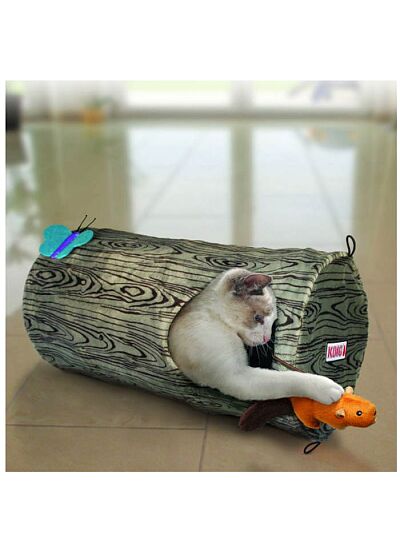 Τούνελ με μια είσοδο, παραθυράκι και δυο ενσωματωμένα παιχνιδάκια, κατάλληλο για όλες τις γατούλες. Το Play Spaces Borrow από την Kong αποτελεί το κατάλληλο παιχνίδι για όλες τις ενεργητικές γατούλες, προσφέροντας τόνους διασκέδασης, καθώς και για τις γατούλες που επιθυμούν το δικό τους προσωπικό χώρο για χαλάρωση και πολύ ύπνο. Η ειδική του σχεδίαση με το παραθυράκι, βοηθά στο να μη φοβάται η γατούλα να χρησιμοποιήσει το τούνελ, ενώ τα ενσωματωμένα παιχνιδάκια, εμποτισμένα με catnip, την προσκαλούν σε ένα ατελείωτο παιχνίδι κρυφτού, διεγείροντας ταυτόχρονα τα κυνηγετικά της ένστικτα.
