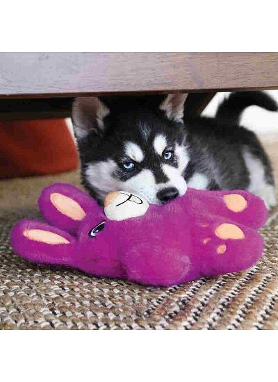 Αφράτο λούτρινο αρκουδάκι με βελούδινο εξωτερικό που παράγει ήχο, για ήπιο παιχνίδι εντός σπιτιού, κατάλληλο για σκυλάκια 7 – 16Kg. Με εξαιρετικά αφράτο σώμα που γεμίζει το στόμα διεγείροντας το ένστικτο για μάσηση και απαλή επένδυση, το Snuzzles Bear της Kong αποτελεί την ιδανική επιλογή για χουζούρι, αγκαλίτσες και χαλαρό μάσημα ανάμεσα στα παιχνίδια. Η ενσωματωμένη σφυρίχτρα στο κυρίως σώμα παράγει ένα δυνατό παρατεταμένο ήχο.