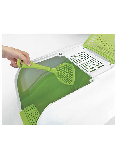 Κλειστή λεκάνη υγιεινής με εργονομικό πορτάκι για εύκολο καθαρισμό της άμμου και φίλτρο άνθρακα που δεσμεύει τις δυσάρεστες οσμές, κατάλληλη για όλες τις γατούλες. Η λεκάνη υγιεινής Luxury Netta της MPS αποτελεί 100% ιταλική κατασκευή από ανθεκτικό πλαστικό, κατάλληλο για μακροχρόνια χρήση. Το εργονομικό της πορτάκι περιστρέφεται ανοίγοντας την οροφή, προσφέροντας εύκολη πρόσβαση για το καθάρισμα της άμμου, χωρίς να χρειάζεται να αφαιρεθεί όλο το καπάκι. Το πλύσιμο της λεκάνης γίνεται εύκολα με σαπούνι και νερό και η εύχρηστη λαβή που διαθέτει κάνει τη μεταφορά παιχνίδι. Ιδανική επιλογή για εσωτερικούς χώρους !!!