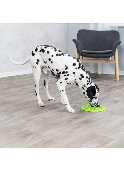 Αντιολισθητικό χαλάκι φαγητού που λειτουργεί και ως πιατάκι κατά της λαιμαργίας, από καουτσούκ, με ανάγλυφη επιφάνεια και υποδοχές για το φαγητό, κατάλληλο για σκυλάκια ανεξαρτήτου μεγέθους και ηλικίας. Το Slow Feeding Food Mat από την Trixie είναι ένα anti – anxiety και anti – boredom παιχνίδι απασχόλησης, το οποίο μπορεί κάλλιστα να χρησιμοποιηθεί και στην εκπαίδευση και ενδείκνυται για ζωάκια που αντιμετωπίζουν προβλήματα λαιμαργίας στο φαγητό. Ο έξυπνος σχεδιασμός του με τις αυλακώσεις και τους ανάγλυφους σχηματισμούς σε όλη του την επιφάνεια, σας επιτρέπει να τοποθετήσετε φαγητό είτε με τη μορφή κροκέτας είτε κονσέρβας είτε κάποιας λιχουδιάς υγρής μορφής όπως γιαούρτι ή φιστικοβούτυρο και πουρέ και να αφήσετε το ζωάκι σας να απασχοληθεί με τις ώρες, γλείφοντας και δαγκώνοντας με την καρδιά του μέχρι και το τελευταίο ίχνος τροφής από τις αυλακώσεις.
